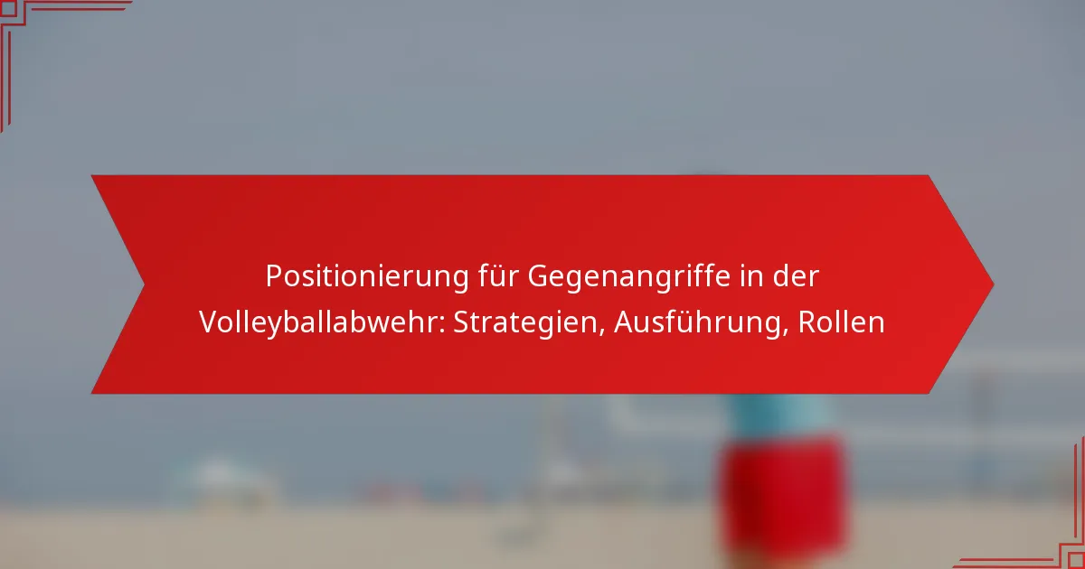 Eine effektive Positionierung in der Volleyballabwehr während Gegenangriffe umfasst das Antizipieren der Bewegungen des Gegners, die Aufrechterhaltung der Kommunikation und die Ausführung spezifischer Bewegungsmuster. Zu den Schlüsselstrategien gehören das Verständnis der defensiven Formationen, die Anpassung an die Spielstile der Gegner und die Förderung von Teamarbeit zur Verbesserung der defensiven Fähigkeiten.